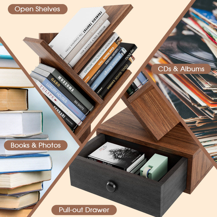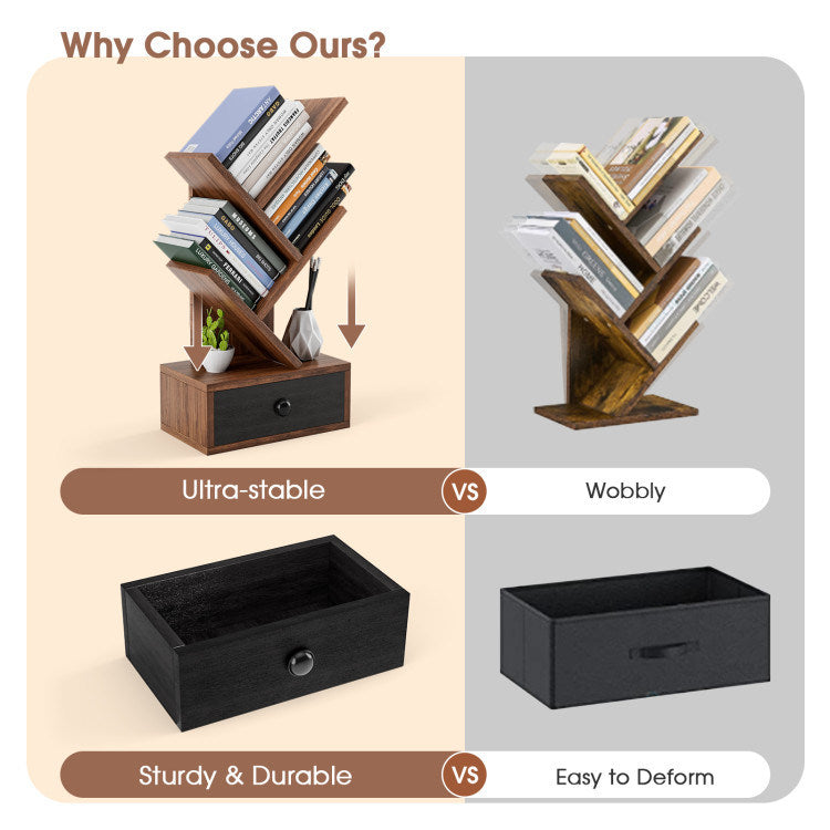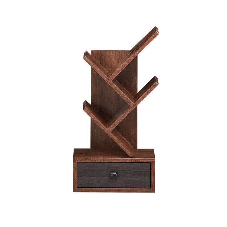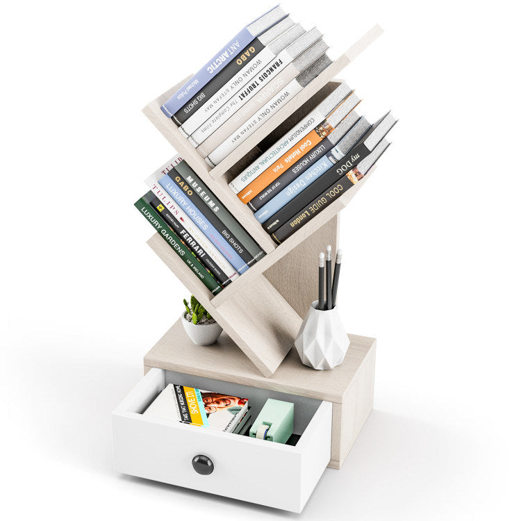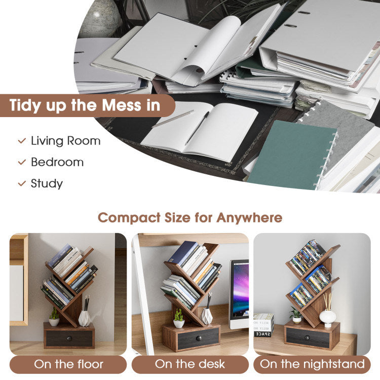 5-Tier Floor Standing Tree Bookcase with Drawer