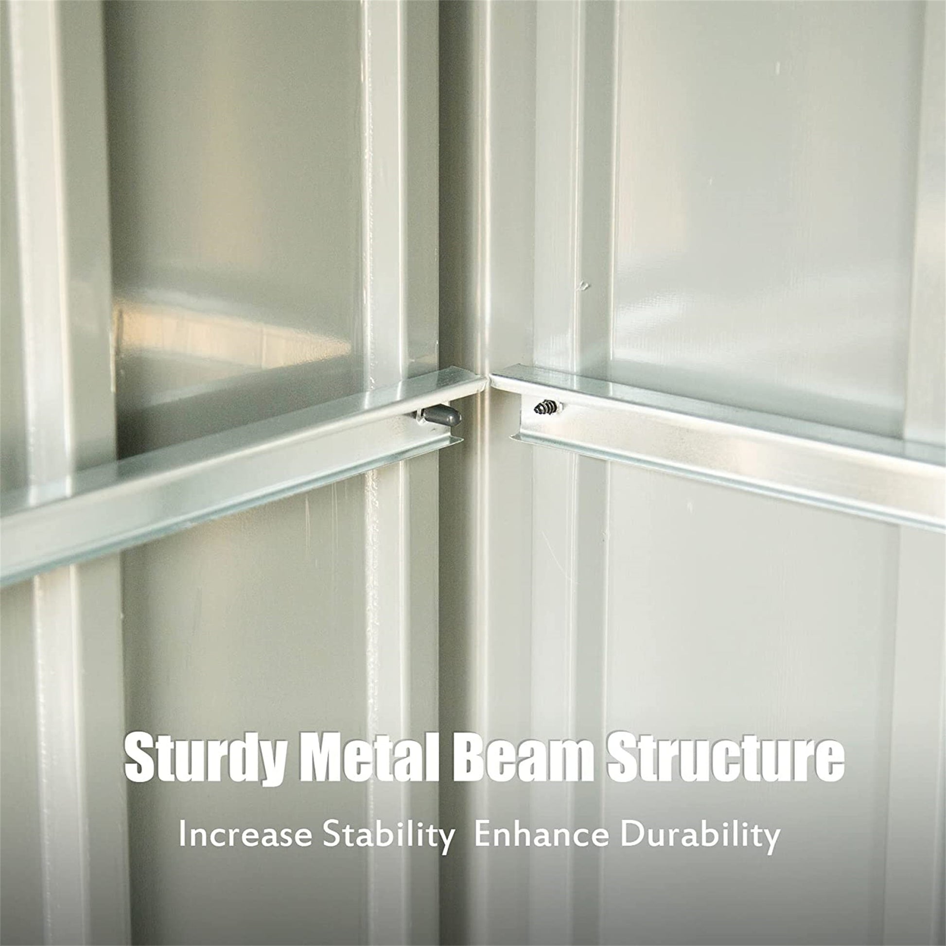 High-quality Material: The tool shed is made of high-quality galvanized metal, which is anti rust and corrosion. Leak resistant top with tight construction, and thick walls with dent resistant durability enable it to last for many years without maintaining.