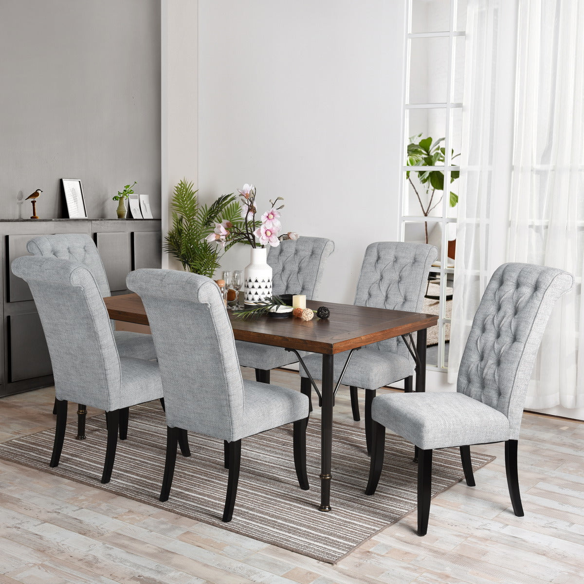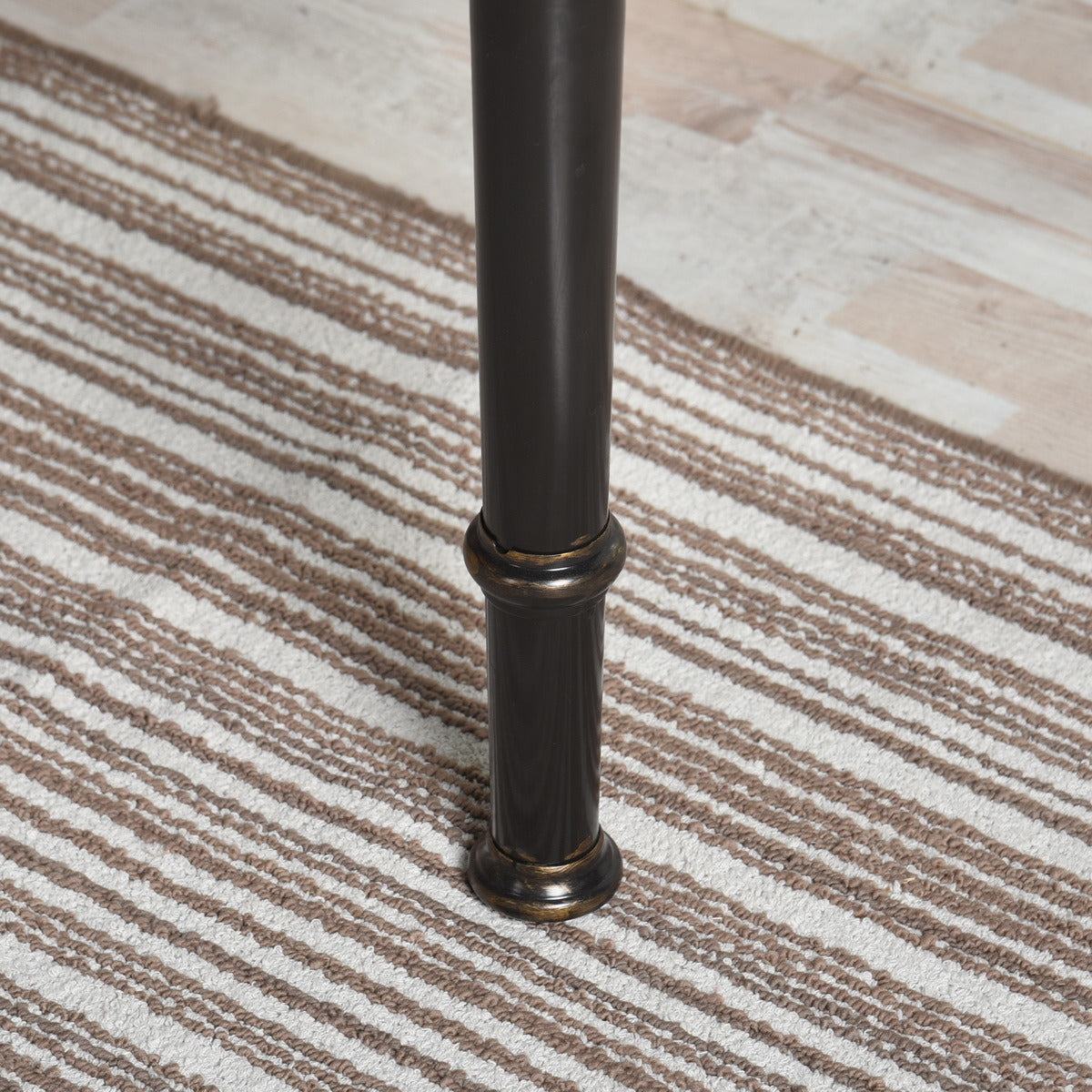 With straight black metal legs can fully support the table and makes it strong enough, at the bottom of the legs there are two antique rings makes it more elegant.