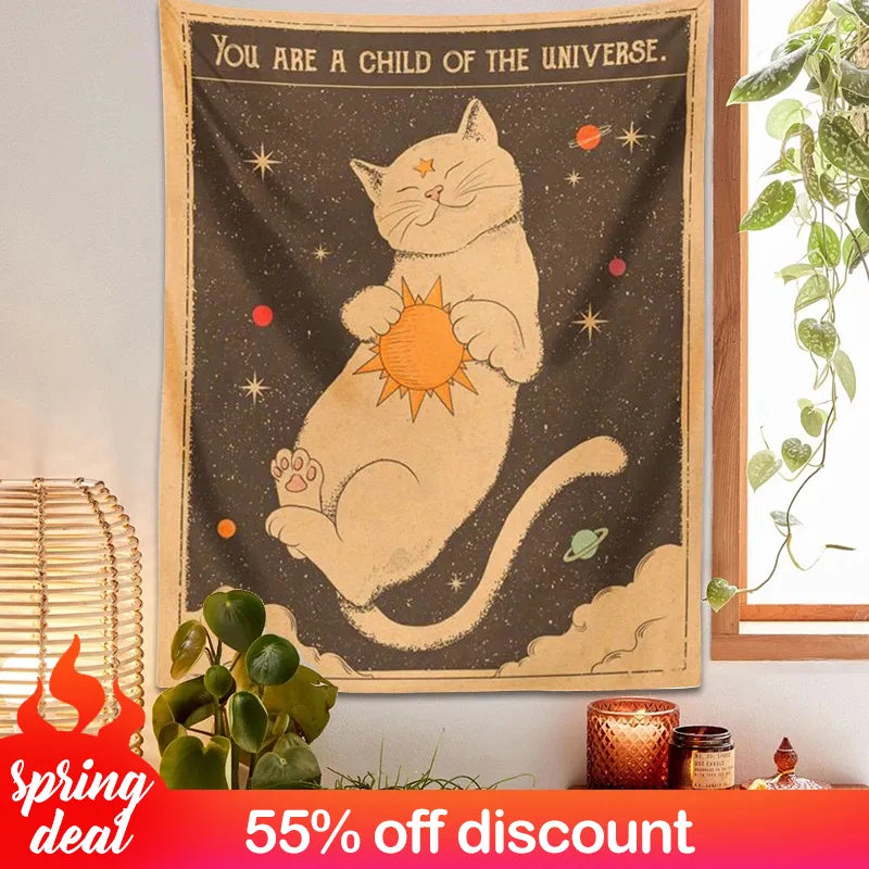 Sun moon Tarot Cat Tapestry Wall Hanging Witchcraft you are a child of the universe Bohemia Home Decor Hippie Bedroom Decor